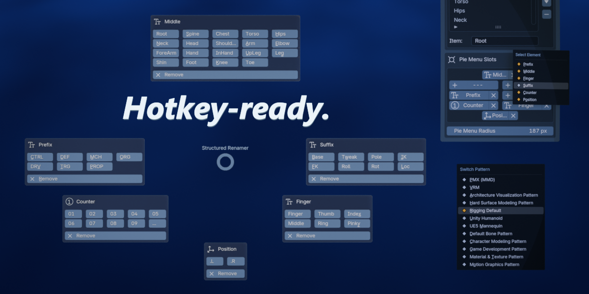 Structured Renamer is designed as a versatile tool for managing naming conventions across various data types within Blender.
